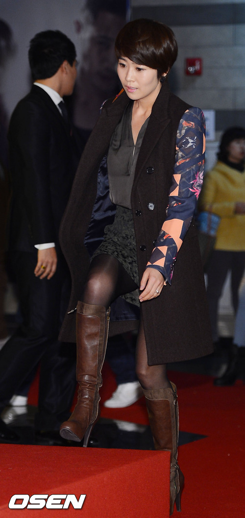 8일 저녁 서울 롯데시네마 건대입구에서 진행된 영화 '자칼이 온다' VIP 시사회에서 김지영이 단상 위로 오르고 있다.