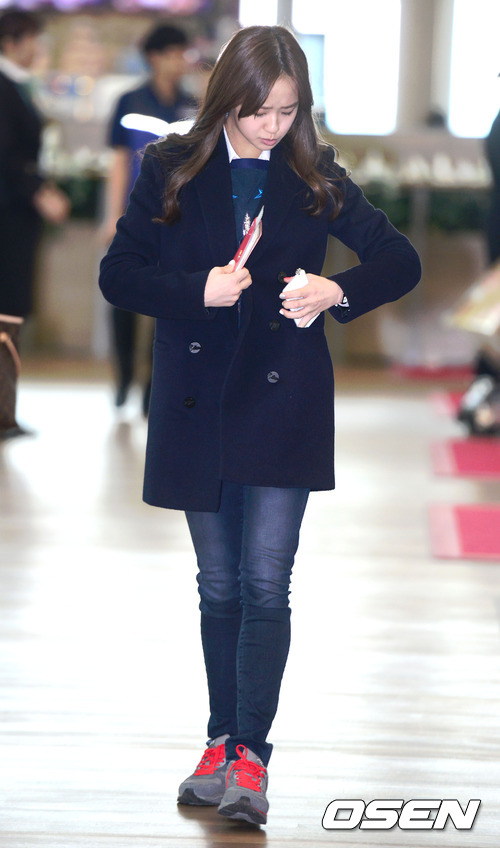 출국전 손연재가 기자회견 장소로 이동하고 있다.
