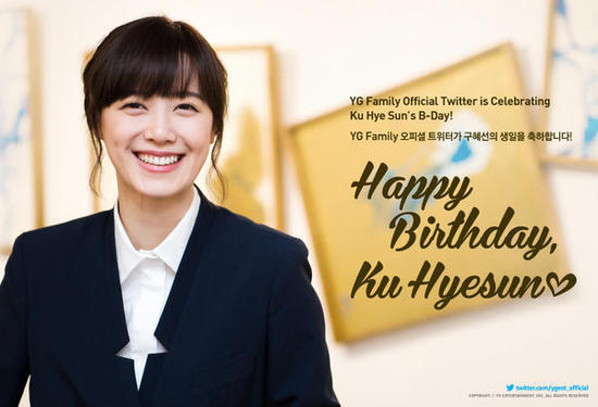 구혜선의 소속사 YG는 9일 공식 트위터에 "Happy Birthday. YG 패밀리 공식 트위터가 구혜선의 생일을 축하합니다"라는 글과 함께 사진 한 장을 게재했다.