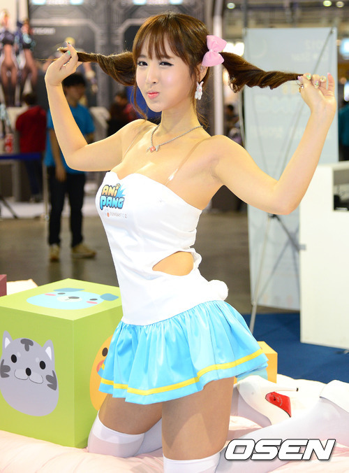 9일 부산 해운대 벡스코(BEXCO)에서 열린 국제게임전시회 '지스타 2012' 선데이토즈 애니팡 부스에서 모델 이예빈이 포즈를 취하고 있다.