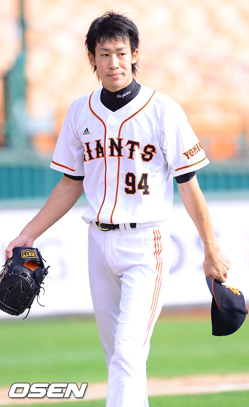 9일 오후 부산 사직구장에서 열린 '마구마구 매니저 아시아시리즈 2012' B조 예선 요미우리 자이언츠(일본)와 퍼스 히트(호주)의 경기 1회초 연속안타를 허용하며 위기를 맞앗던 요미우리 선발투수 고야마가 퍼스의 공격을 막은 후 더그아웃으로 들어가고 있다.