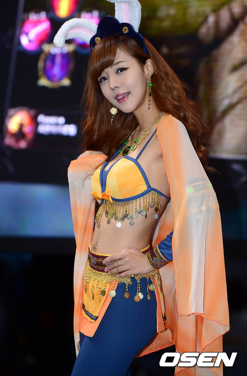 9일 오전 부산 해운대 벡스코(BEXCO)에서 열린 국제게임전시회 '지스타 2012'에서 위메이드 부스 모델이 포즈를 취하고 있다.