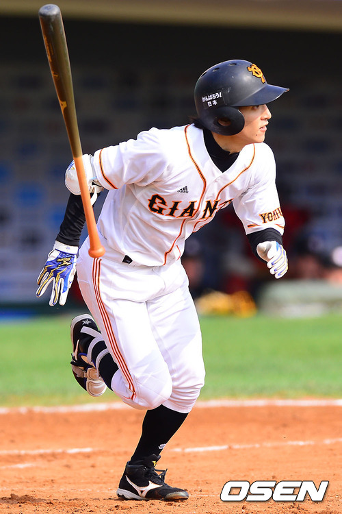 9일 오후 부산 사직구장에서 열린 '마구마구 매니저 아시아시리즈 2012' B조 예선 요미우리 자이언츠(일본)와 퍼스 히트(호주)의 경기 4회말 1사 요미우리 마츠모토가 안타를 날리고 있다.