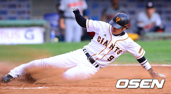 9일 오후 부산 사직구장에서 열린 '마구마구 매니저 아시아시리즈 2012' B조 예선 요미우리 자이언츠(일본)와 퍼스 히트(호주)의 경기 6회말 무사 1,3루 요미우리 사카모토의 희생플라이때 3루 주자 가메이가 득점하고 있다.