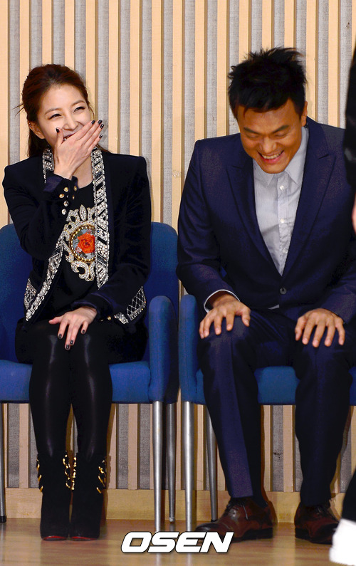 9일 오후 서울 SBS 목동사옥 SBS 홀에서 열린 SBS 서바이벌 오디션 'K팝스타 시즌2' 제작발표회에서 보아와 박진영이 양현석의 포토타임을 바라보며 즐겁게 웃고 있다.