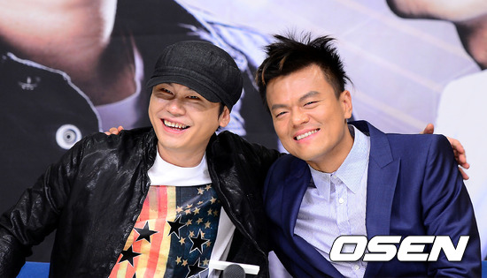 9일 오후 서울 SBS 목동사옥 SBS 홀에서 열린 SBS 서바이벌 오디션 'K팝스타 시즌2' 제작발표회에서 양현석와 박진영이 포토타임을 갖고 있다.