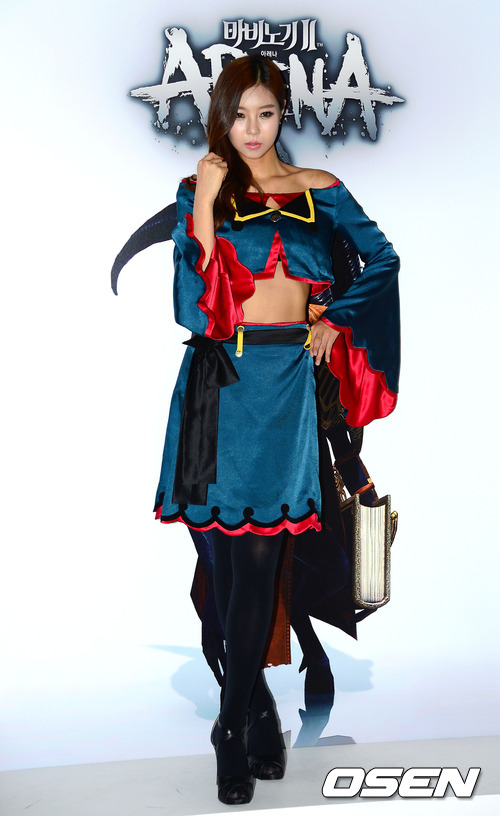 9일 부산 해운대 벡스코(BEXCO)에서 열린 국제게임전시회 '지스타 2012' 마비노기2 부스에서 부스걸이 포즈를 취하고 있다.