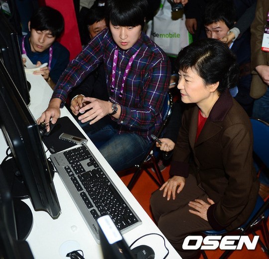박근혜 대선 후보는 9일 오후2시경 부산 벡스코에서 열리고 있는 국제 게임박람회 '지스타2012' 현장을 찾아와 국내 게임산업 전반적인 상황을 현장에서 듣고 체험하면서 젊은이들과 소통하는 시간을 가졌다.