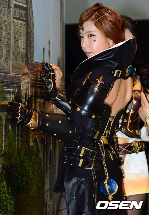 9일 부산 해운대 벡스코(BEXCO)에서 열린 국제게임전시회 '지스타 2012' 부스걸이 포즈를 취하고 있다.