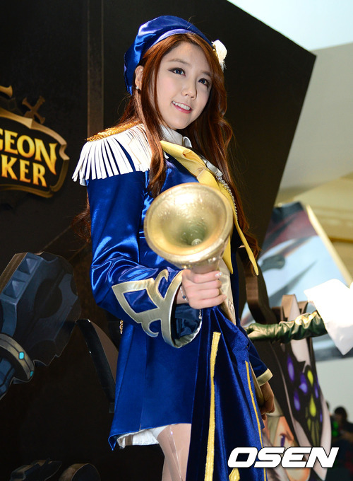 9일 부산 해운대 벡스코(BEXCO)에서 열린 국제게임전시회 '지스타 2012' 던전 스트라이커 부스걸이 포즈를 취하고 있다.