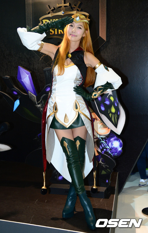 9일 부산 해운대 벡스코(BEXCO)에서 열린 국제게임전시회 '지스타 2012' 던전 스트라이커 부스걸이 포즈를 취하고 있다.