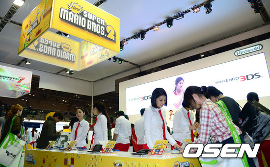 9일 부산 해운대 벡스코(BEXCO)에서 열린 국제게임전시회 '지스타 2012' 닌텐도 부스에서 관람객들이 신작을 체험하고 있다.