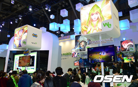9일 부산 해운대 벡스코(BEXCO)에서 열린 국제게임전시회 '지스타 2012' 위메이드 부스에서 관람객들이 신작을 체험하고 있다.
