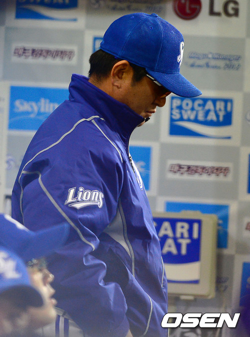 9일 부산 사직구장에서 열린 '마구매니저 아시아시리즈 2012' A조 예선 삼성 라이온즈(한국)와 라미고 몽키즈(대만)의 경기 8회초 2사 삼성 류중일 감독이 생각에 잠겨 있다