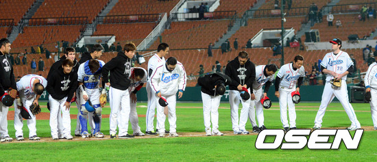 9일 오후 부산 사직구장에서 열린 '마구매니저 아시아시리즈 2012' A조 예선 삼성 라이온즈(한국)와 라미고 몽키즈(대만)의 경기 종료 후 라미고 선수들이 관중들에게 인사를 하고 있다.