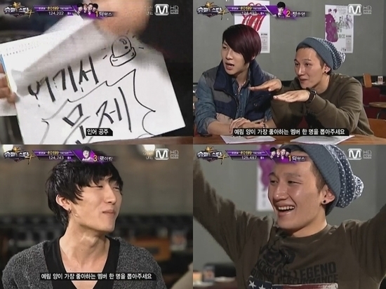 엠넷 '슈퍼스타K 4' 딕펑스가 투개월(도대윤, 김예림)의 김예림을 위해 스케치북 이벤트를 펼쳤다.