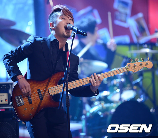 9일 저녁 서울 동대문구 경희대학교 평화의 전당에서 열린 Mnet ‘슈퍼스타K4’(이하 ‘슈스케4’) 다섯번째 생방송에서 딕펑스의 김재흥이 베이스를 치며 열창을 하고 있다.