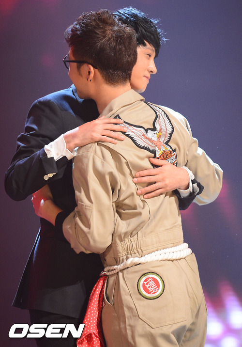 9일 저녁 서울 동대문구 경희대학교 평화의 전당에서 열린 Mnet ‘슈퍼스타K4’(이하 ‘슈스케4’) 다섯번째 생방송에서 정준영이 TOP3에 진출하며 홍대광과 포옹을 하고 있다.