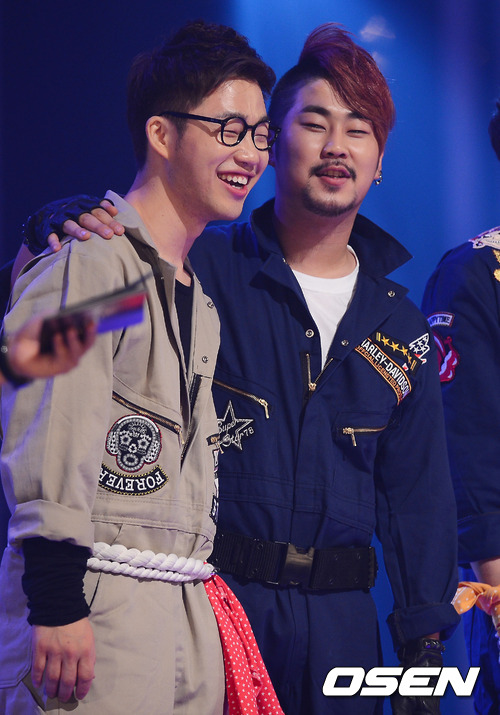9일 저녁 서울 동대문구 경희대학교 평화의 전당에서 열린 Mnet ‘슈퍼스타K4’(이하 ‘슈스케4’) 다섯번째 생방송에서 TOP3에 진출에 실패한 홍대광이 딕펑스 김재흥에게 격려를 받고 있다.