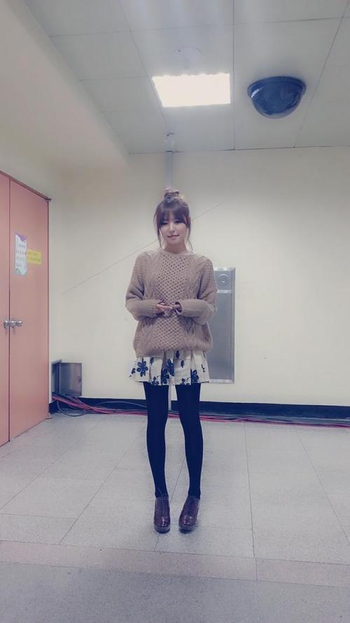 공개된 사진 속 김그림은 품이 넉넉한 니트와 짧은 치마를 입고 서 있다. 치마 사이로 드러난 긴 다리와 머리를 묶어 더욱 도드라지는 얼굴 크기는 전신 비율을 돋보이게 했다.