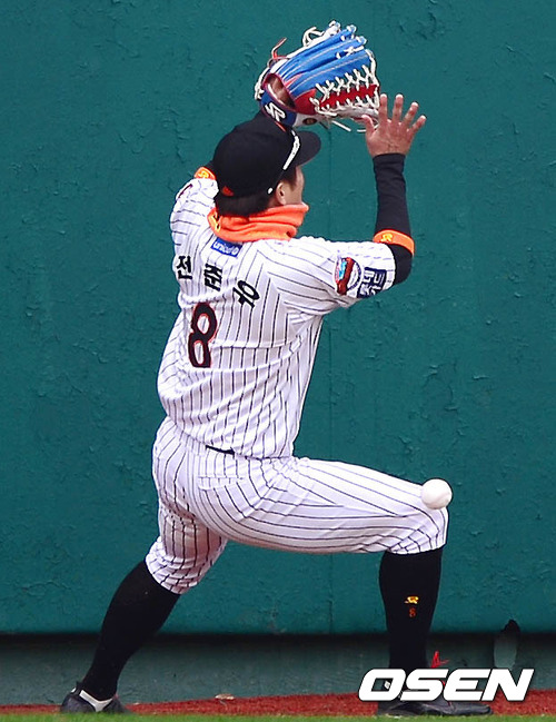 10일 오후 부산 사직구장에서 열린 '마구매니저 아시아시리즈 2012' B조 예선 롯데 자이언츠와 요미우리 자이언츠의 경기 4회초 1사 사네마츠의 타구를 전준우가 못 잡고 있다.