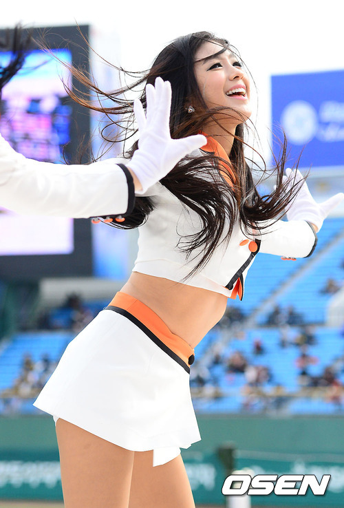 10일 오후 부산 사직구장에서 열린 '마구매니저 아시아시리즈 2012' B조 예선 롯데 자이언츠와 요미우리 자이언츠의 경기 롯데 치어리더가 멋진 공연을 펼치고 있다