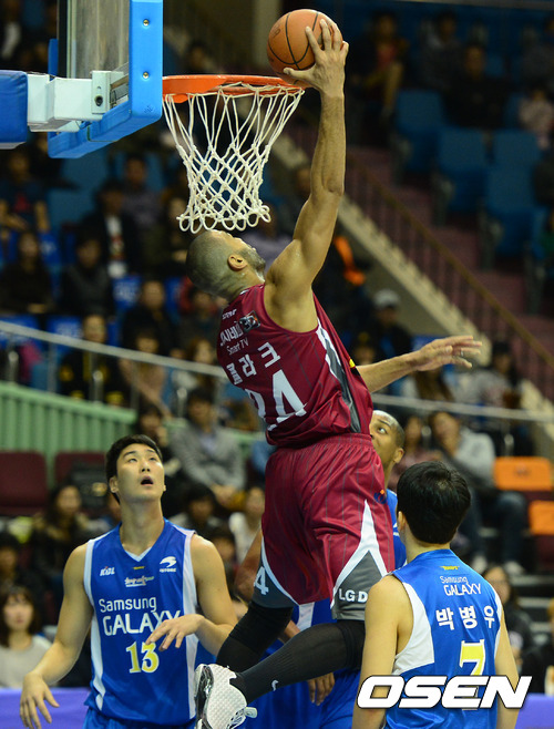3쿼터 LG 클라크가 리버스 덩크를 성공시키고 있다.