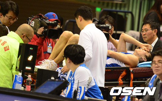 3쿼터 삼성 이시준이 부상을 당하고 병원으로 후송되고 있다.