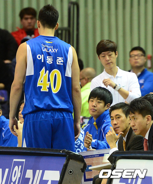 4쿼터 삼성 이상민 코치가 점수차가 20점 이상 나자 심각한 표정으로 경기를 지켜보고 있다.