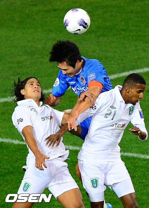 10일 오후 울산 문수축구경기장에서 열린 '2012 아시아축구연맹(AFC) 챔피언스리그' 결승전 울산 현대와 알 아흘리(사우디아라비아)와의 경기 전반 울산 곽태휘가 선취골을 넣고 있다