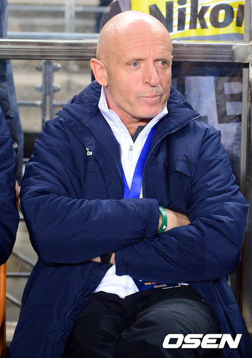 10일 오후 울산 문수축구경기장에서 열린 '2012 아시아축구연맹(AFC) 챔피언스리그' 결승전 울산 현대와 알 아흘리(사우디아라비아)와의 경기 시작 전 알 아흘리 카렐 야롤림 감독이 벤치에 앉아 있다.