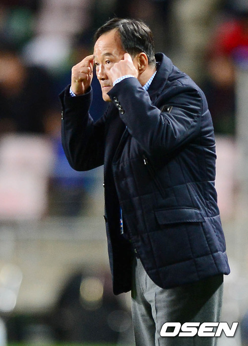 10일 오후 울산 문수축구경기장에서 열린 '2012 아시아축구연맹(AFC) 챔피언스리그' 결승전 울산 현대와 알 아흘리(사우디아라비아)와의 경기 전반 울산 김호곤 감독이 선수들에게 지시를 하고 있다.