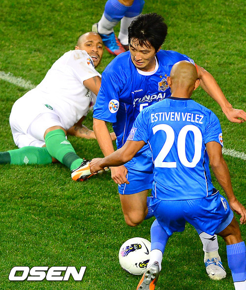 10일 오후 울산 문수축구경기장에서 열린 '2012 아시아축구연맹(AFC) 챔피언스리그' 결승전 울산 현대와 알 아흘리(사우디아라비아)와의 경기 전반 울산 곽태휘가 공을 가로채 드리블하고 있다