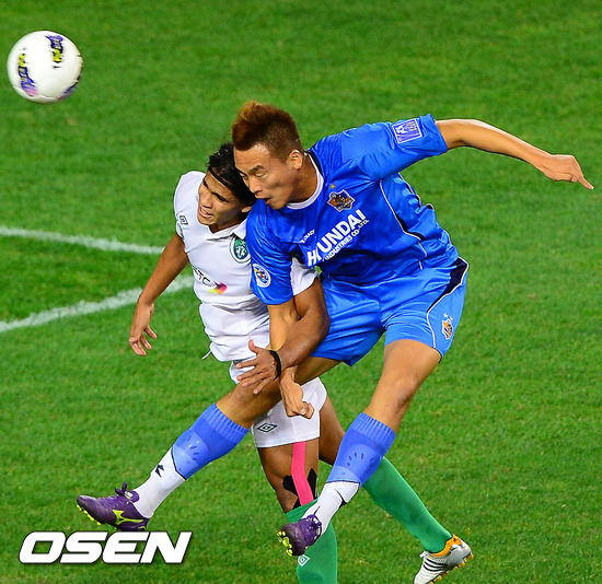 10일 오후 울산 문수축구경기장에서 열린 '2012 아시아축구연맹(AFC) 챔피언스리그' 결승전 울산 현대와 알 아흘리(사우디아라비아)와의 경기 전반 울산 김신욱이 헤딩슛을 시도하고 있다