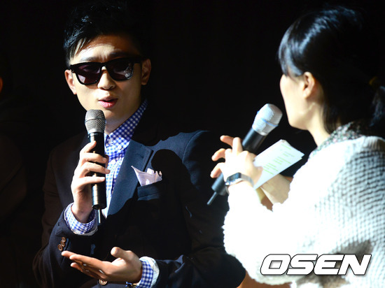 10일 오후 청담CGV 엠큐브에서 열린 '프로듀서 프라이머리 쇼케이스'에서 프라이머리가 박지선과 토크쇼를 갖고 있다.