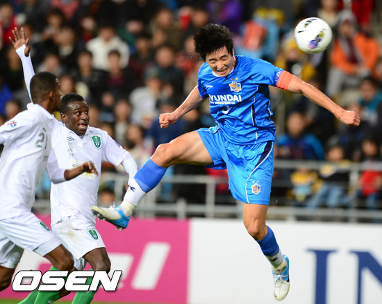 10일 오후 울산 문수축구경기장에서 열린 '2012 아시아축구연맹(AFC) 챔피언스리그' 결승전 울산 현대와 알 아흘리(사우디아라비아)와의 경기 후반 곽태휘가 문전에서 헤딩슛을 시도하고 있다.