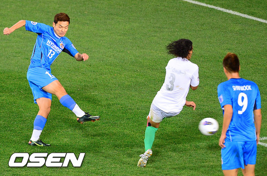 10일 오후 울산 문수축구경기장에서 열린 '2012 아시아축구연맹(AFC) 챔피언스리그' 결승전 울산 현대와 알 아흘리(사우디아라비아)와의 경기 후반 울산 김승용이 추가골을 넣고 있다