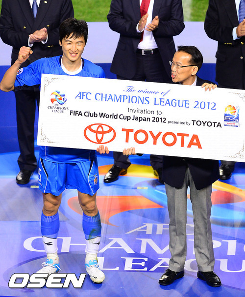 경기종료 후 울산 주장 곽태휘가 피파 클럽 월드컵 피켓을 들고 포즈를 취하고 있다./ soul1014@osen.co.kr