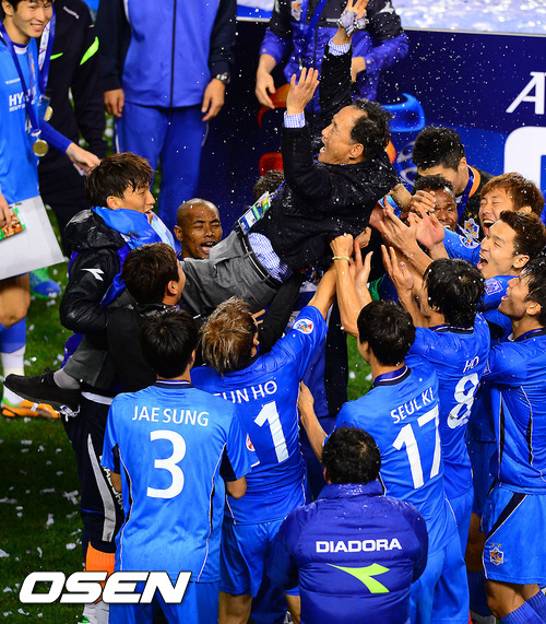 경기종료 후 시상식에서 울산 김호곤 감독이 헹가래를 받고 있다./ soul1014@osen.co.kr