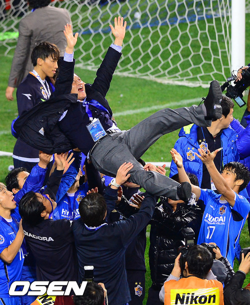 경기종료 후 시상식에서 울산 김호곤 감독이 헹가래를 받고 있다./ soul1014@osen.co.kr