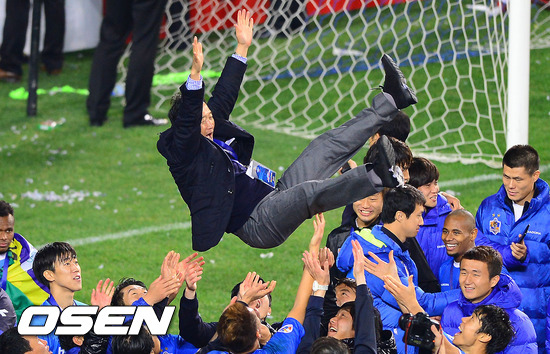 경기종료 후 울산 김호곤 감독이 우승 헹가래를 받고 있다. / soul1014@osen.co.kr
