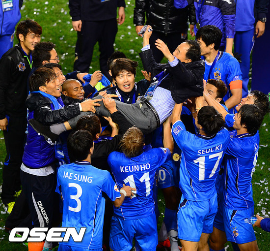 경기종료 후 울산 김호곤 감독이 우승 헹가래를 받고 있다. / soul1014@osen.co.kr