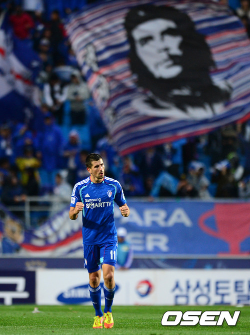 후반 삼성 스테보가 패널티킥으로 동점에 성공하고 기뻐하고 있다.