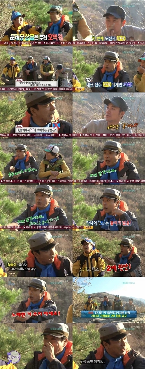11일 오후 방송된 KBS 2TV ‘해피선데이-1박2일’에서 멤버들은 울산광역시 울주에 위치한 ‘영남 알프스’로 억새밭 여행을 떠났고 OB와 YB로 나뉘어 등산을 했다. 두 팀 모두 등산을 하면서 중간 휴식시간에 퀴즈대결을 펼쳤고, 중간 매점에서 라면을 사먹기 위해서 멤버들은 모두 문제를 맞추면 주어지는 500원에 목숨을 걸었다.