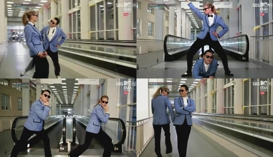 하이디 클룸은 12일 오전 6시(한국시간) 독일 프랑크푸르트에서 생중계된 SBS MTV 유럽뮤직어워드(EMA) 2012(이하 EMA2012)에서 싸이와 촬영한 패러디 영상을 공개했다.