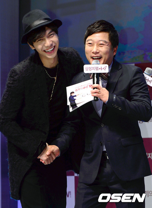 12일 오후 서울 삼성전자 서초사옥 본관 딜라이트5층 다목적홀에서 진행된 삼성지펠아삭 M9000과 함께하는 '승기의 아삭SHOW'에서 이승기와 이수근이 반갑게 인사를 나누고 있다.