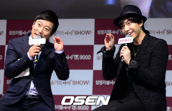 12일 오후 서울 삼성전자 서초사옥 본관 딜라이트5층 다목적홀에서 진행된 삼성지펠아삭 M9000과 함께하는 '승기의 아삭SHOW'에서 이수근과 이승기가 포토타임을 갖고 있다.