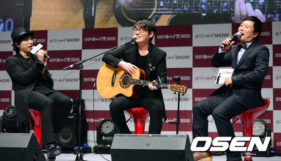 12일 오후 서울 삼성전자 서초사옥 본관 딜라이트5층 다목적홀에서 진행된 삼성지펠아삭 M9000과 함께하는 '승기의 아삭SHOW'에서 신승훈이 모창실력을 선보이고 있다.