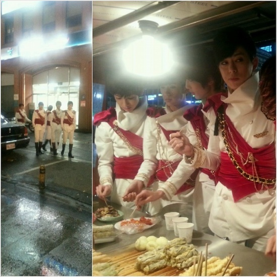 사진 속 보이프렌드는 신곡 '야누스' 의상을 입은 채로 방송국 근처 포장마차에서 야식을 먹고있는데, 왕자님을 연상케 하는 무대의상 분위기와 극명한 대조를 이루어 네티즌들의 폭소를 자아내고 있다.