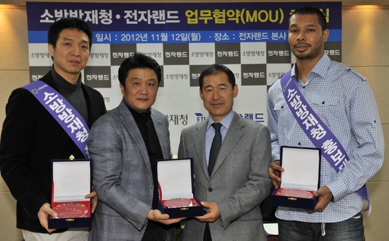 전자랜드는 지난 12일 용산에 있는 전자랜드 별관에서 소방방재청과 전자랜드 본사 및 농구단간 업무협약 체결식을 가졌다. 전자랜드 본사 및 농구단은 이번 업무협약식을 통해 공익 캠페인 참여 및 홍보를 위해 적극적으로 협조, 소방 및 방재 등 재난 발생시 이를 대비할 수 있고 국민의 안전의식을 고취시킬 수 있도록 국민들에게 홍보할 예정이다.